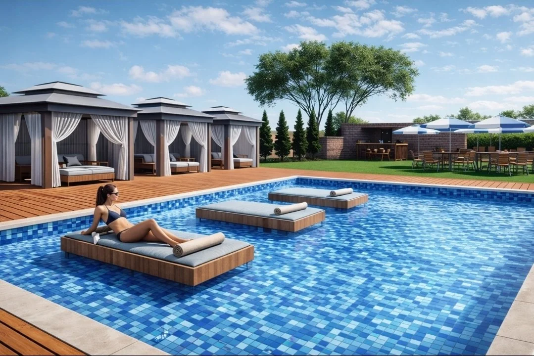 SHALLOW POOLS FEATURING PLUSH DAYBEDS